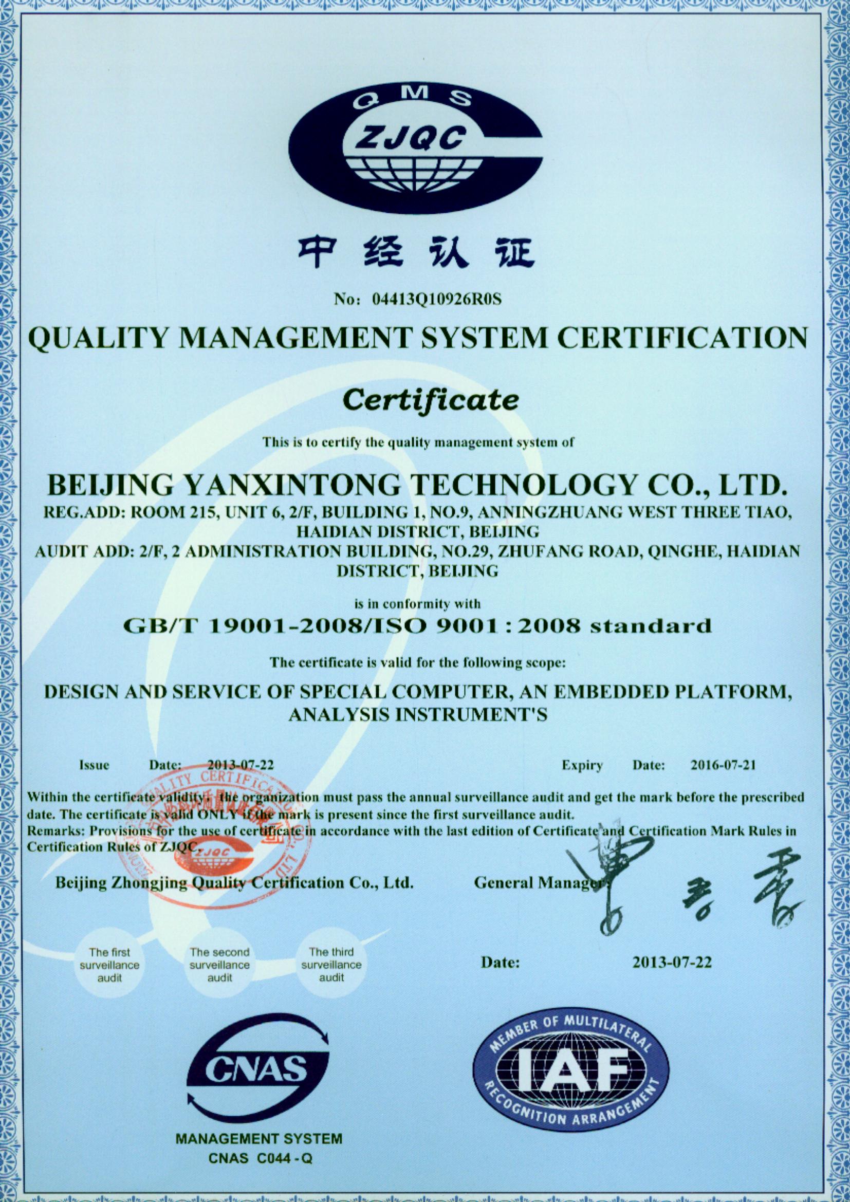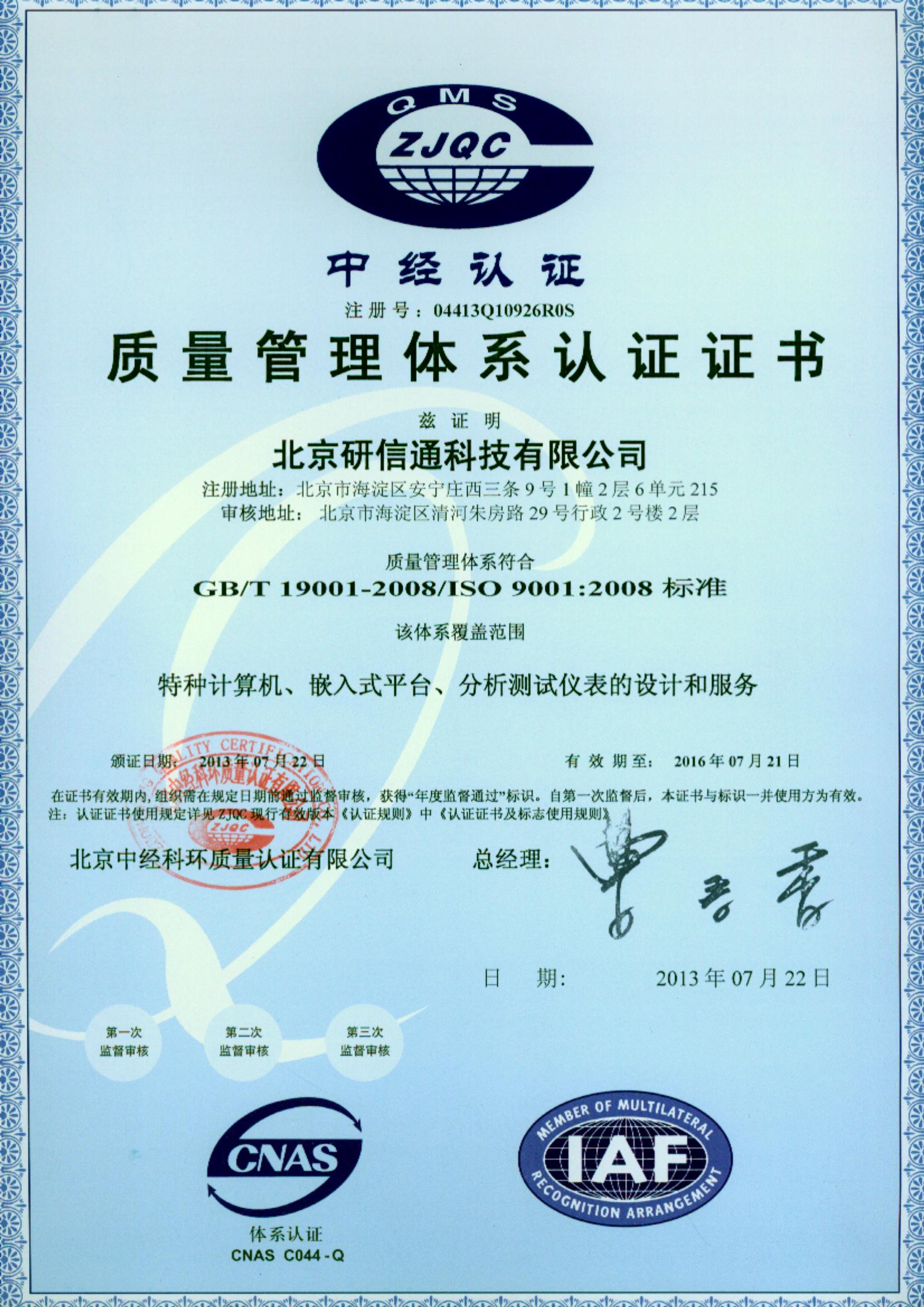 研信通科技通過ISO9000質量體系認證全面嚴格管理和執行,讓我們的系統產品均達到GJB150B-86環境試驗認證及第三方可靠性認證,達到了高質量標準。我們正在積極籌備多項技術資質認證和軍工保密認證。研信通科技產品以高品質、高可靠、高穩定性、高性價比的優勢深受廣大用戶的認同。研信通科技的理念是“科學、嚴謹、認真、負責”,以卓越的品質和完善的售后,為用戶提供放心質量保證的系統產品和滿意的服務。